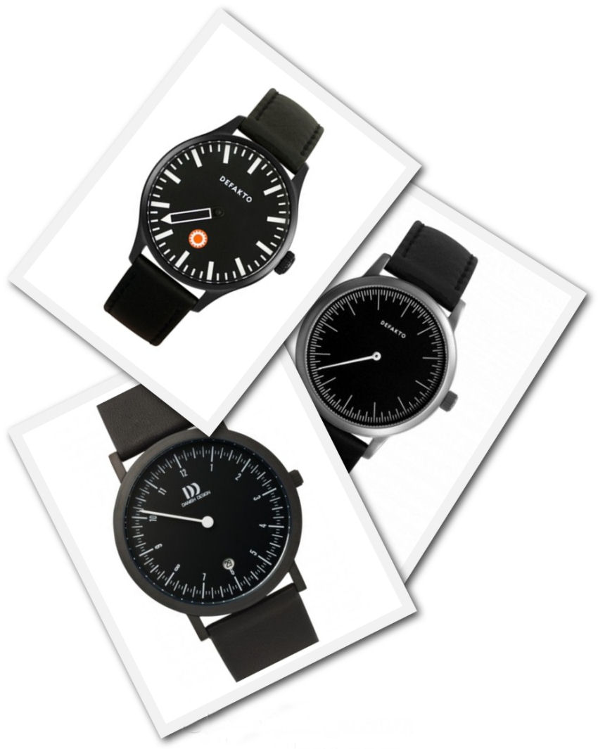 - Danish Design (DD) IQ19Q820 Black Titanium Mono – again Quartz powered but with a dial design very like the others with the addition of a date window @6. Also as neater and better dimensionally to the Defaktos at 37mm diameter and only 6mm depth – quite a nice performer. Again Note – this is a Single Hand 24hr watch.