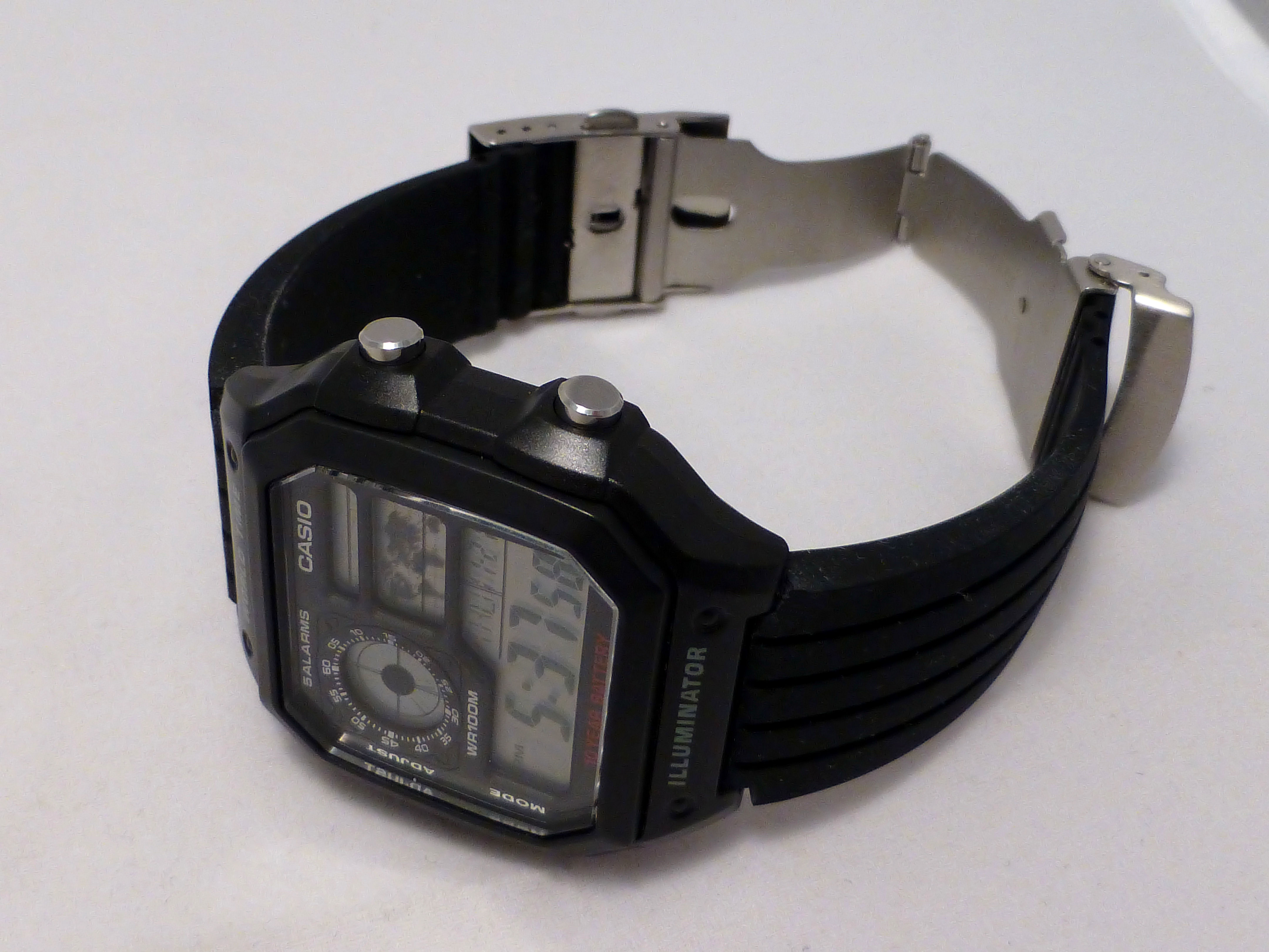 My last post featured a Casio model and I mentioned that fitting a replacement strap such as a NATO one would be tricky owing to the space between the spring bars and the case being too neat. However, this is the silicon deployment fold-over strap that I thought might do, IF I was able to fit one – I did and this is it.