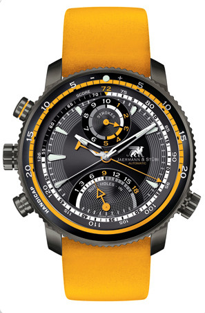 This rather intense looking model is from Jaermann & Stubi watches. The Stroke Play Eagle Heart EHI model. Made in Switzerland and with it’s patented anti-shock (Shock Guard) system is absolutely ideal for GOLF. Built in to this model is an automatic clock used to count the number of strokes played and show retrograde indication of the number of holes played – very clever. It can even manage players handicaps, so a truly bespoke function model indeed.