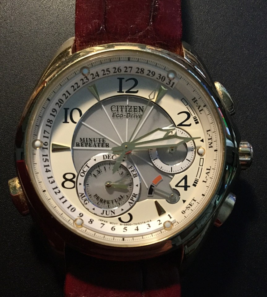 But not being worn it’s actually in pretty fair condition and is the Citizen Eco-Drive Minute Repeater Calibre 9000 model. This model had quite a few complications, so interesting to see how I get on with it. Although not a collector, like me, he was like me, in that I do have a few complicated watches and within a very short time scale, lose interest in them – basically too old for novelties and the eyesight not as good anyway, so busy dials don’t do it for me anymore.