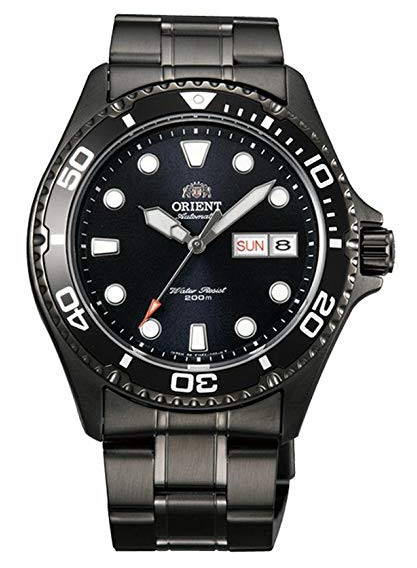 The next I’ve seen is the Orient FAA02003B9, again described as a Diver, though to me recreational is more acceptable and it is also 200m described. This is the black version with a 22mm deployment bracelet. The stainless steel case of 43mm diameter (ex crown) by 13mm thickness, so quite chunky.