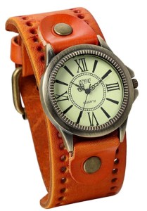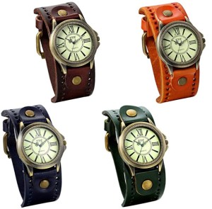 The leather strap/cuff of each is a different colour and from a fashion conscious guy, really quite smart – and it tells him the time without referring to his Smart Phone – now isn’t that a novelty!