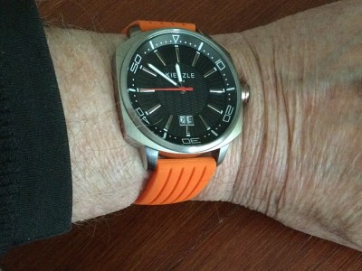Note – I added a final image with an orange silicon deployment strap fitted – so much better than the original retro-fit type – slimmer and neater on the wrist.