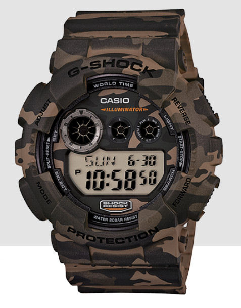 The Casio GD120CM5 digital Camouflage model shown here is one with an excellent display, tough case, dull finish, shock resistant, water resistant to 200m and has a whole pile of extra functions from chronograph to Alarms and OK it does have a decent LED back light – so you MUST take care when using that! So, as far as a digital only model at $130 it’s also pretty good and the camouflage case and strap is a nice touch. Also uses the CR2015 battery so expect around 7 years. But that strap – is it changeable for a standard fit strap? Unfortunately not, as it uses a proprietary resin affair from Casio fitted to 16mm? spring bars – very odd set up – and that’s a pity – but for the price of the watch – maybe buy 3 of ’em – should last a few years, even in action.