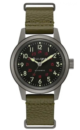 This is the “Hack” from Bulova, which is a homage if you like to their military heritage, but simplified to suit the “no frills” watch wearer. It also features an Automatic 21 jewel mechanical movement as opposed to Quartz. The movement has a 42 hour reserve, so for those who don’t wear the watch overnight, no worries, it will still be running in the morning.