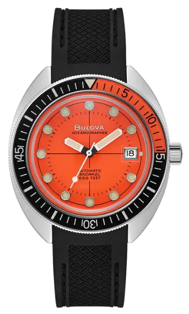 This is the Bulova Oceanographer 96B350 200m water resistant ISO compliant Diver’s model. It is powered by a mechanical Automatic Miyota movement, so is very reliable.