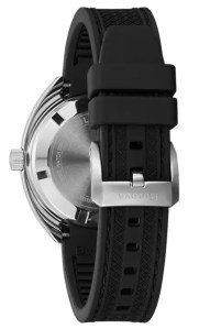 The dial is protected by a domed sapphire crystal, the stainless steel back is a solid screw fit, it has a standard fitting flexible rubber strap with pin buckle and the crown is knurled enough to get a good grip on it, so what’s not to like?