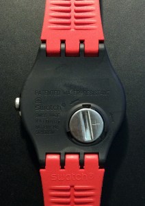 Note the back of the watch and the proprietary Swatch battery hatch and the text quoting the battery type, which is always useful, so you can order one before taking the old one out, which is sensible. However, a silicon strap for me, might have been preferable to the bio stuff, which feels a bit plasticky, though it is flexible.