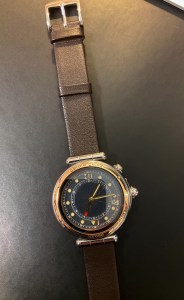 The alarm is mechanical and the sound is produced by a small hammer striking a gong attached to the movement. It is what I would call (and Omega said this too) a discrete sound and rather nice in comparison to the modern digital ones. I find it really quite good as not only I can actually hear it (not so with digital alarms as I’m at an age now where I don’t hear certain frequencies) plus it has a bonus of a gentle vibration as the hammer hits the gong.