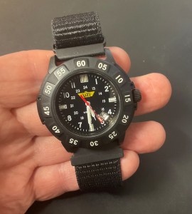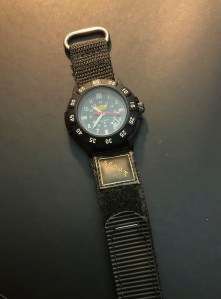 I began looking at a watch I’d had for years – this old Uzi Defender watch (amazingly good watch too) which had a nylon “wrap strap” (did I fit it years ago? no idea) or that’s what I called it. Like another old Timex I have, it sported a metal loop ring topside with wrap around Velcro closure.