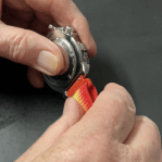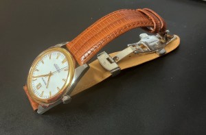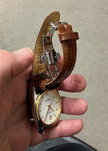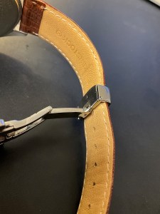 This attaches to a standard leather strap. And here again, some are good, holding the watch close to the wrist and some the opposite, so check before purchase.