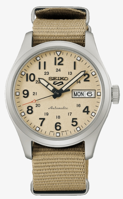 One that has similar features is the mainstream is the Seiko 5 ‘Desert Kit’ Midfield Sports Style.