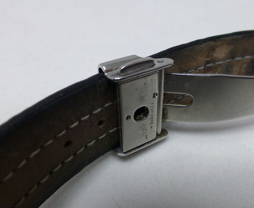The Longines branded deployment clasp itself is actually very good and I note it doesn’t have your typical friction fit clamp adjustment. It is more subtle than that. To alter the fit length you have to push in one of the pushers (it’s marked with a little arrow) which allows the small push-button assembly to lift out. Once out, re-position the deployment over the strap hole you want, then pop it back in – job done.