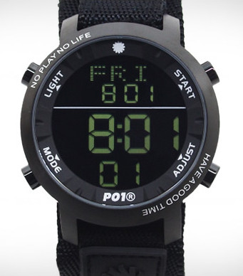 The P01TIME is one such brand, launched by Japanese snowboarding company Playdesign. This model is from their 3rd collection and called Super Digital which has a IP coated 46mm diameter stainless steel case, mineral crystal, Water Resistance of 3ATM and nylon strap and available in a range of color combinations.