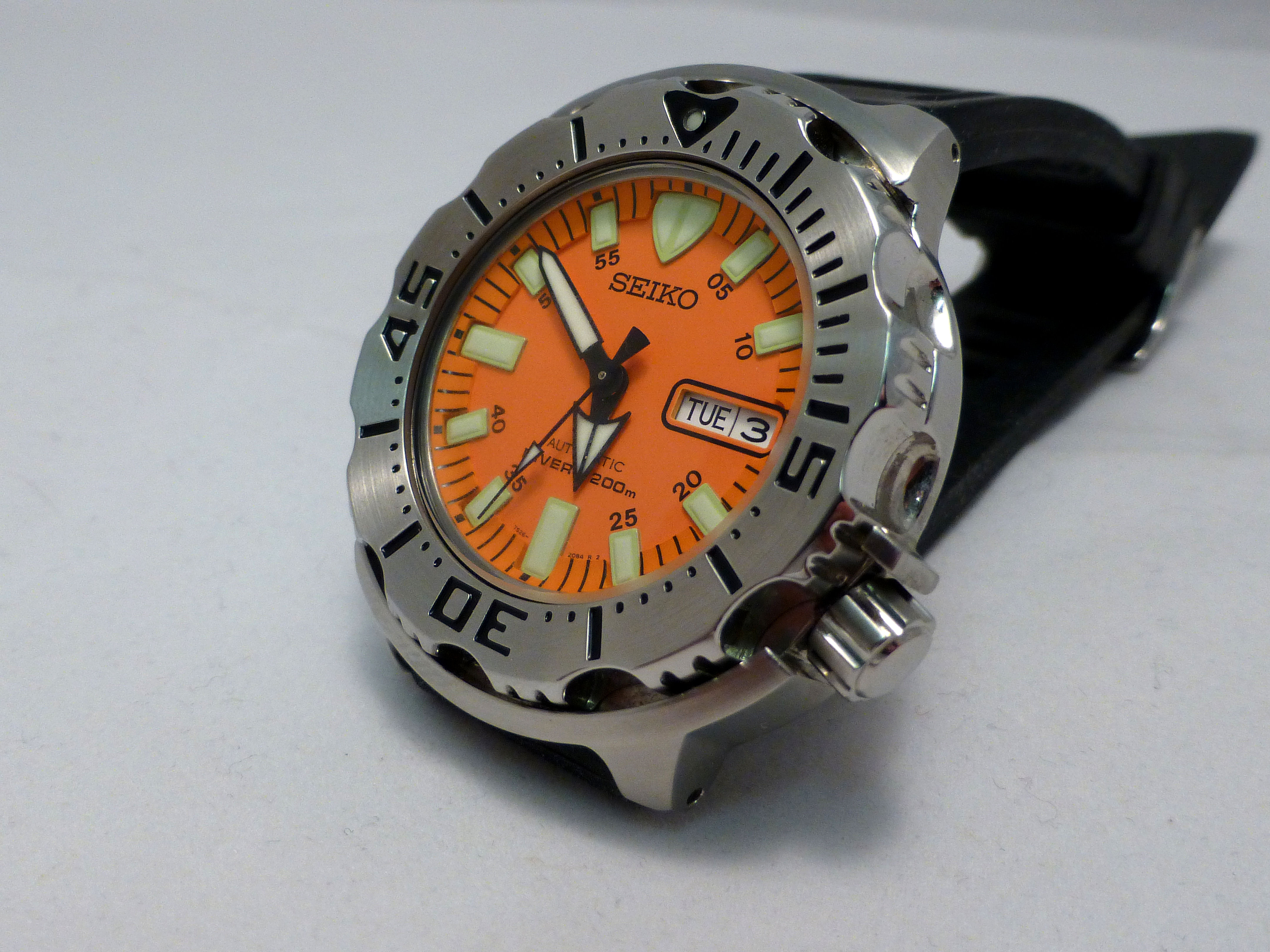 It has to be the Seiko Orange Monster – looks big but wears small and a fabulous watch in every way. With it’s 21 jewel Seiko 7S26 Auto it is a tried and tested ultra reliable movement plus 200m Water Resistance – difficult to beat at any price.