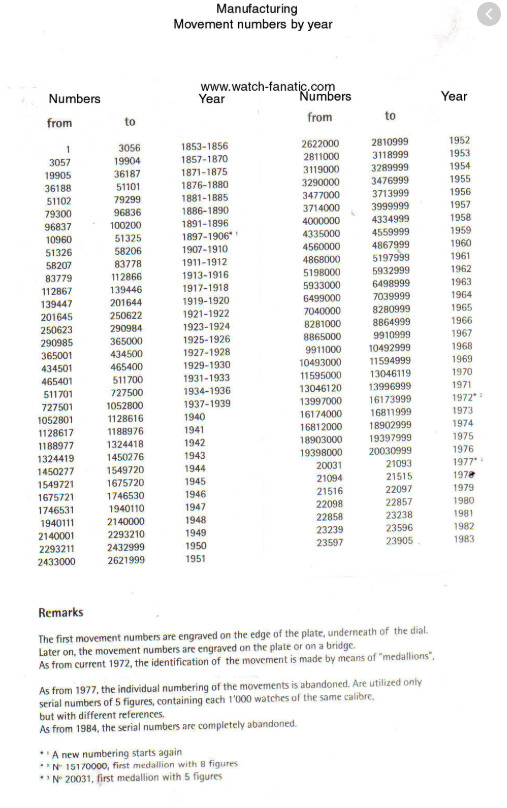 - http://www.pocketwatchrepair.com/histories/sn-lookup.html – this is another excellent Serial Number reference site for number of watch brands.