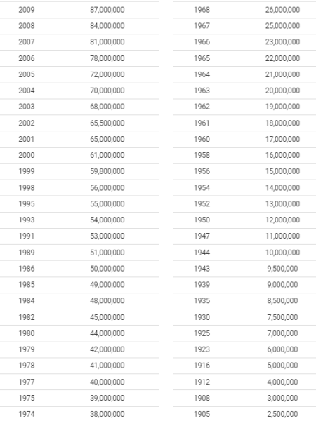 24,100,000=1922 ; 24,300,000=1923 ; 24,550,000=1924 ; 24,800,000=1925 ;