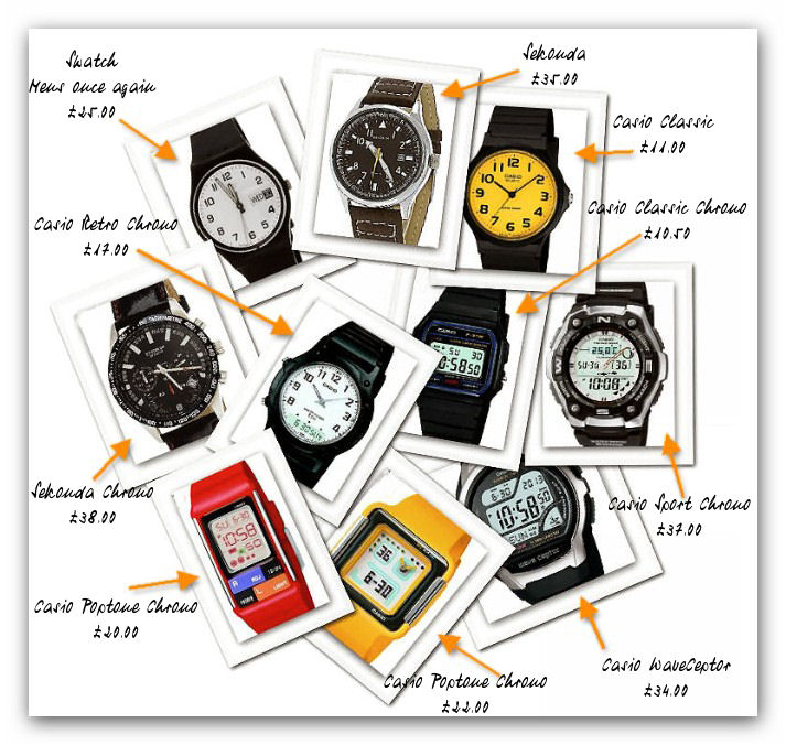 In this montage here I’ve also included a couple from Sekonda, the British manufacturer who topped the UK sales for brand in 1998 and still up there and also there’s a Swatch watch in there who produce some wonderful “cult” design watches at affordable prices too.