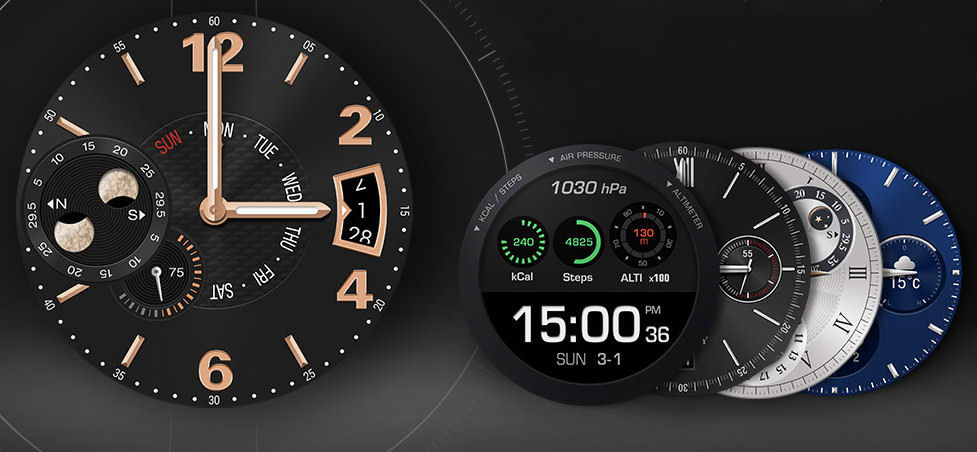 This model is from Huawei, certainly more mainstream, being the World’s 3rd largest producer of Cell Phones and at under £150. It’s actually quite a decent construction and well made and with a conventional strap (not integrated, which is a huge plus). It also comes with two straps – the one shown is a black soft silicon and very comfortable and the other a tan leather one. Both come with quick release spring bars, so changing straps for any conventional watch strap is easy.