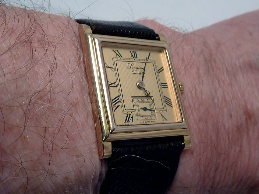 It appears to have a Lavet-type motor and is powered by a 1.55v battery. Not tested it but looks as if it may be 9ct gold plated on stainless steel case body and is fitted with a high quality Hirsch genuine Lizard strap with the gold plated Longines Logo engraved buckle.