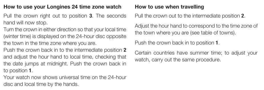 Setting instructions (Longines) –Fortunately Longines have an excellent web site where this setting information and movement data is freely available, so even though I bought this pre-owned without instruction papers and so on. it was quite easy to download the relevant information as above.