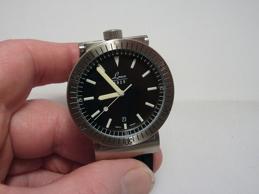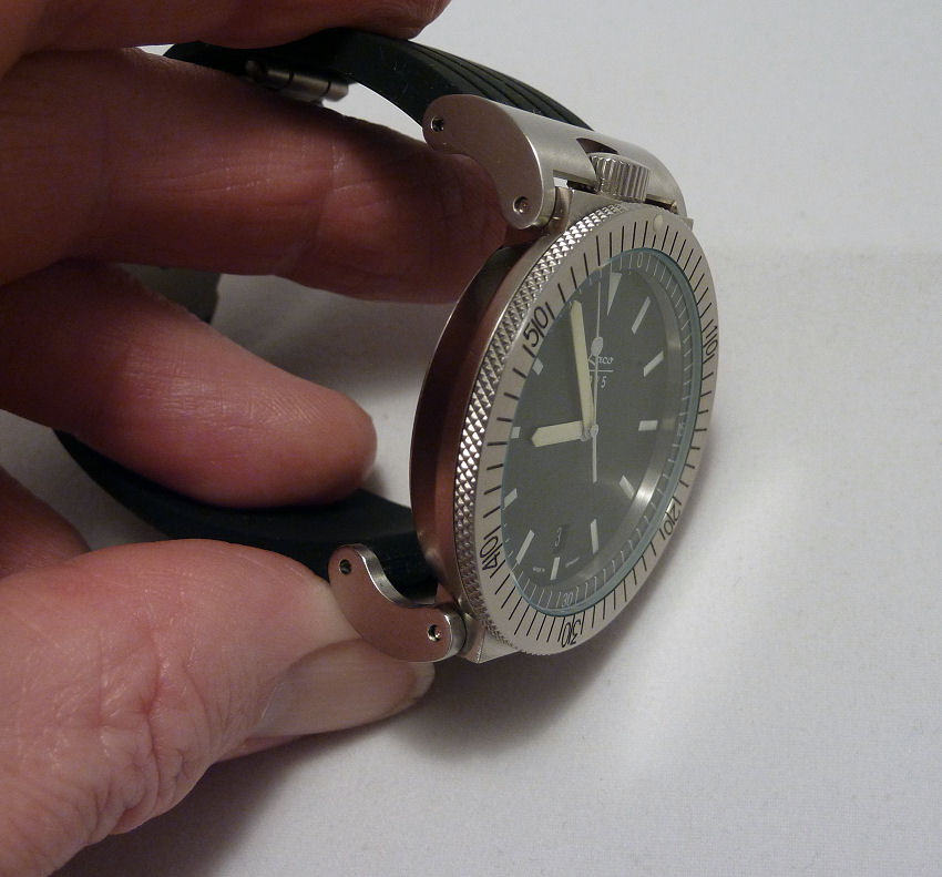 It is described as minimalist, which is fair comment as there are no frills on this neat timepiece. The dial uses a plain black moving disc moving with a cut out segment for the fixed times disc in white contrast. The minute hand is bright and easily seen in yellow, so dial-wise as minimalist as you’d want. The watch is said to be 30 m water resistance, though as it has a snap back, I would doubt it but it certainly fits snug with that nice “snap” sound on closing.