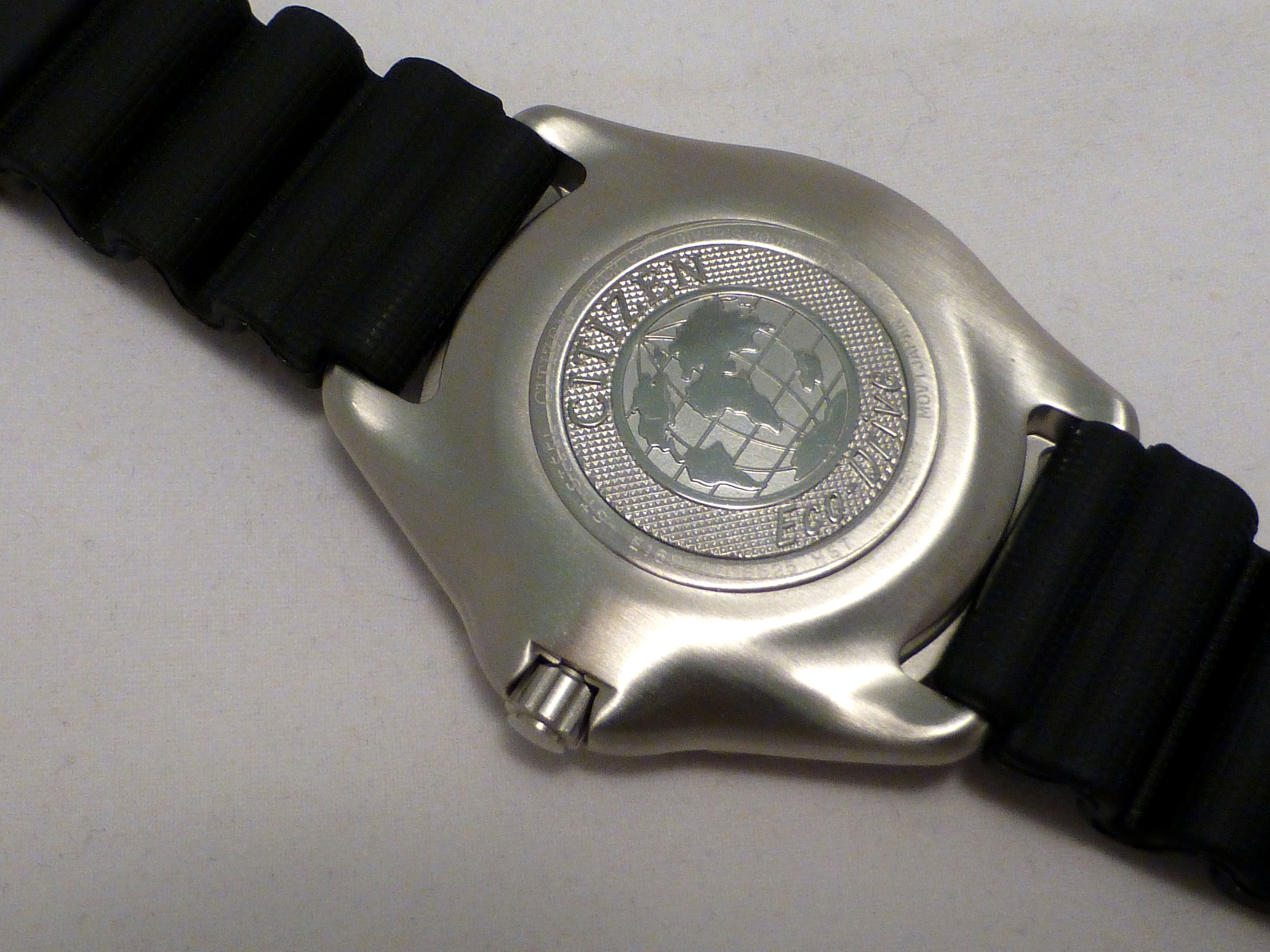 This is the Citizen BN0000-04H Stainless Steel Divers Date model. 300m Water resistance rated and Screw Down crown plus rubber strap.
