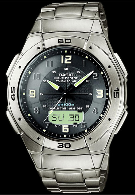 My older WVA model has almost the same functions, 2 receiver Radio Control (as opposed to 6), Solar, 1/100 sec Chronograph, 3 Alarms, battery indicator and with decent analog hands, a center seconds hand and a good digital display.